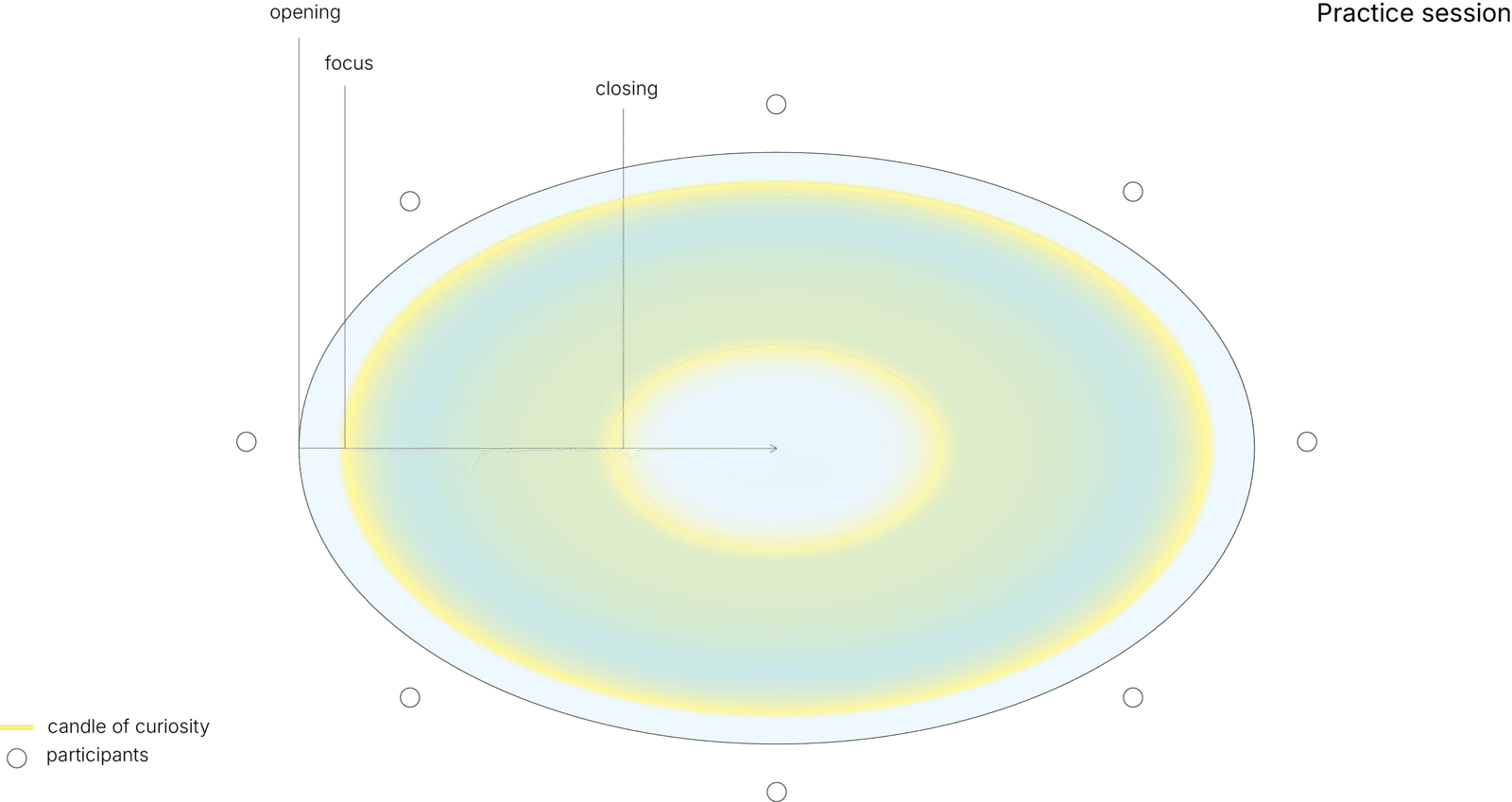• The Closing takes part in the last 15 minutes of the Practice, and its goal is to collaboratively summarise the learnings that emerged during the Focus.